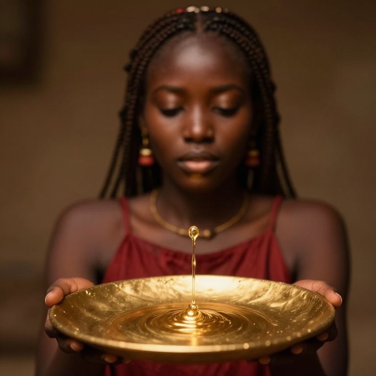 Circle Mursi tribe girl with big lip plate, liquid gold pouring onto the plate, realistic photoshoot, 85mm f1.8,