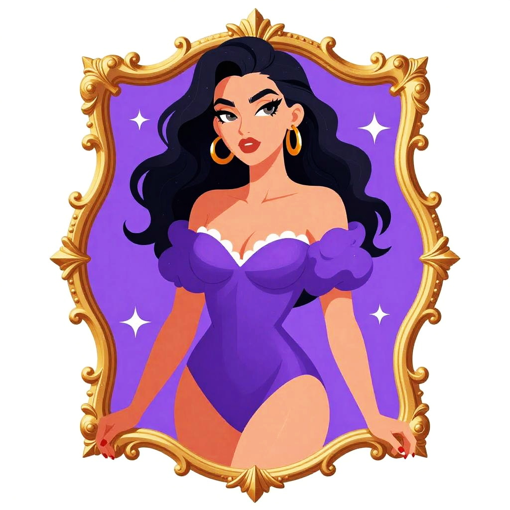 Woman illustration. Cartoon, erotic vibe. Fusion of styles Art Nouveau and Cyberpunk
