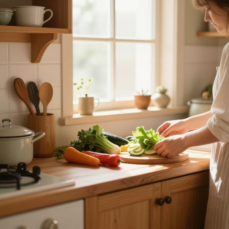 Girl Enjoying Apple in Cozy Kitchen