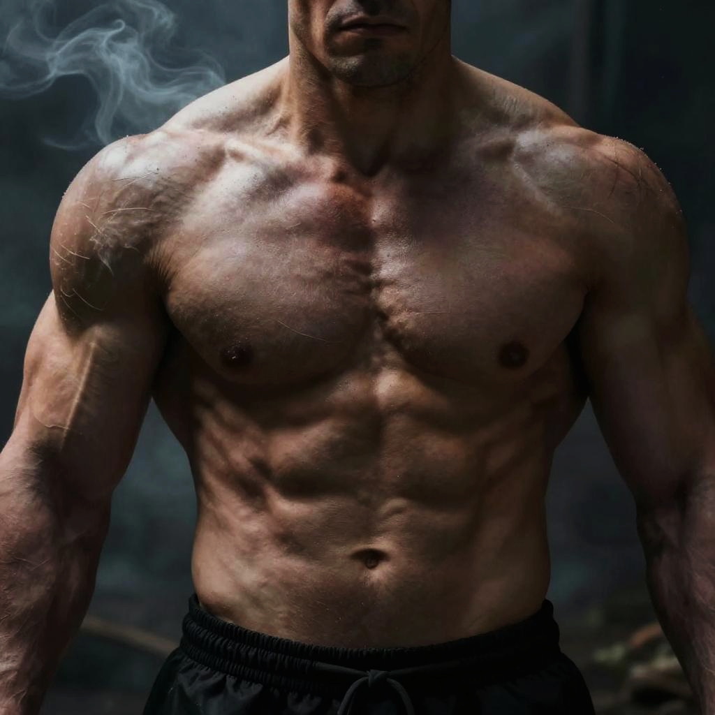 Matthew McConaughey muscle building workout, intense gym scene, sweat and determination, detailed muscular anatomy, warm golden hour lighting, dynamic pose
