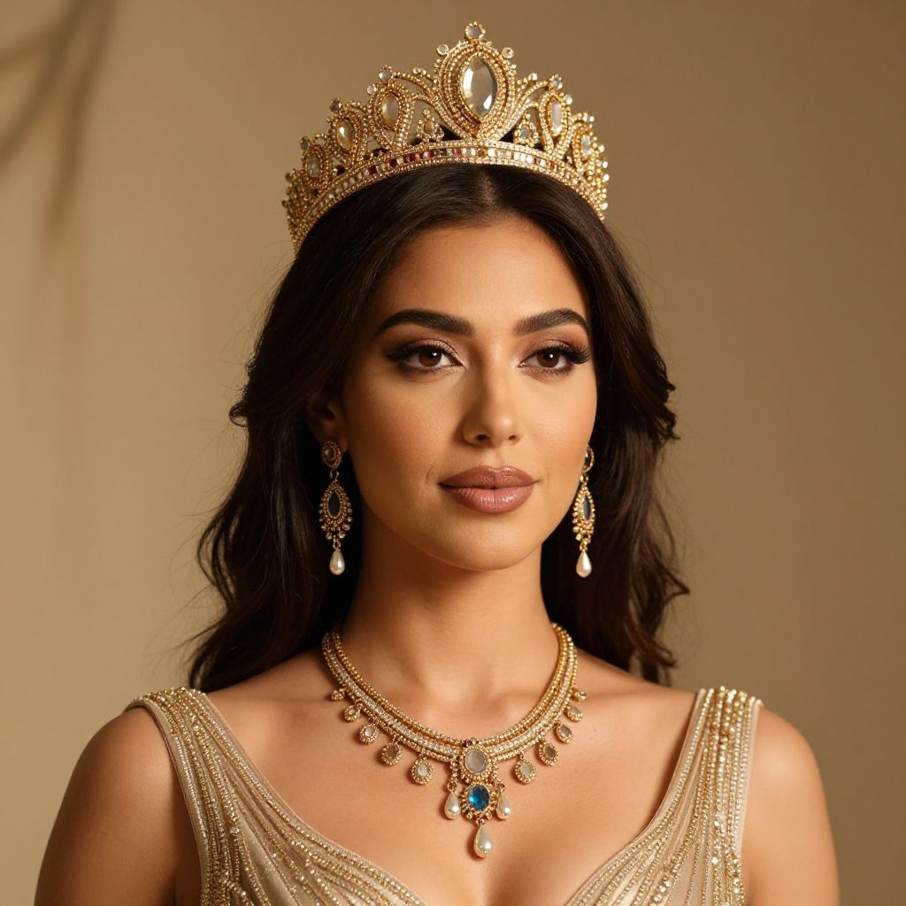 "Woman Queen Nile, a close up of a woman wearing a crown and a dress"
