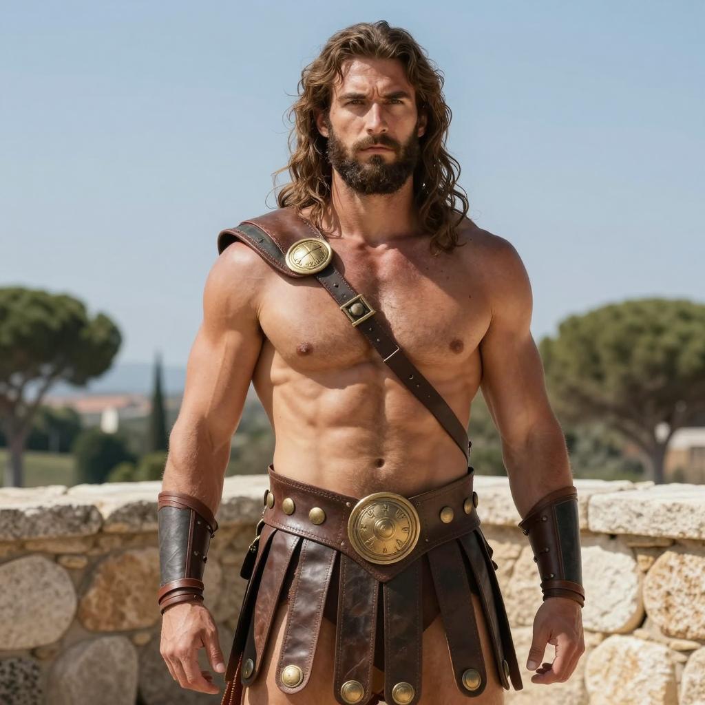 Ancient Greek Warrior in Gladiator Costume