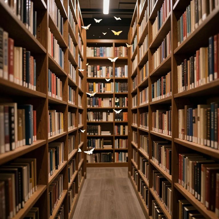 A library where books are alive, fluttering out of shelves like moths when unobserved, each seeking a reader.