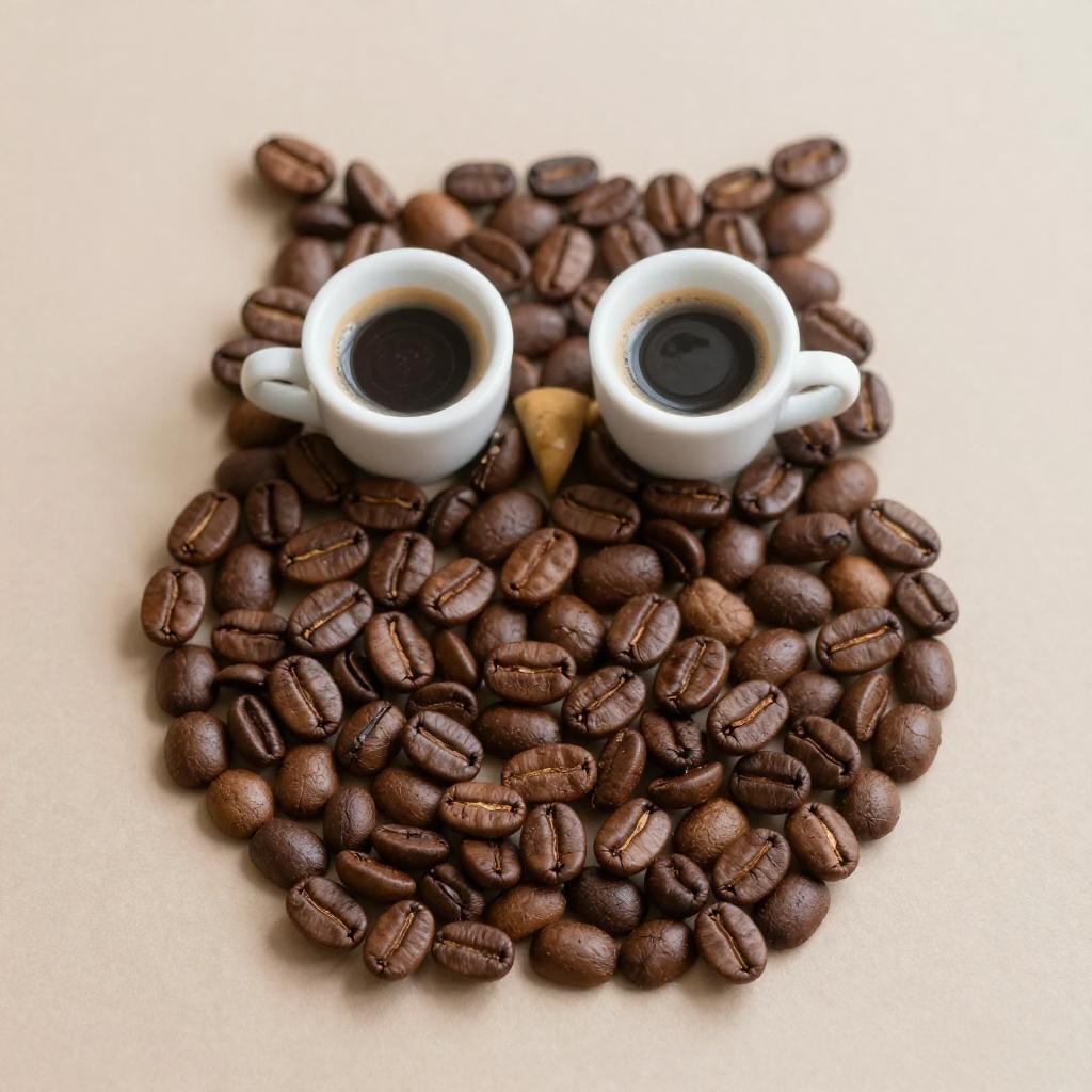 Owl Coffee Art on Beige Background
