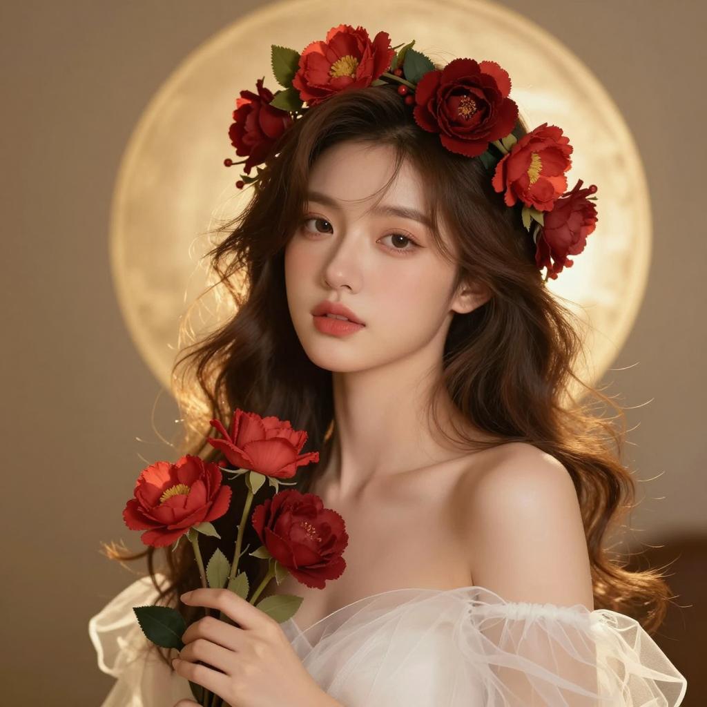 Vibrant Portrait of a Flower-Adorned Woman