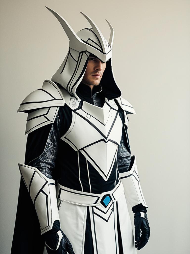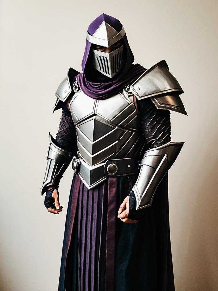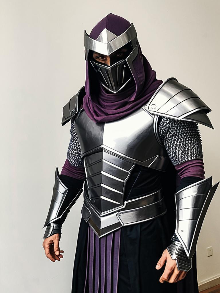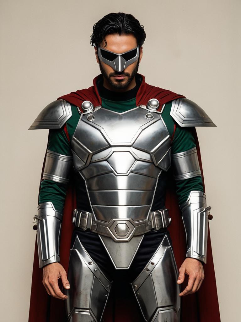Man cosplay. Wearing Steel Massimo costume. Realistic photo. Dressed as Steel Massimo --sref 1400