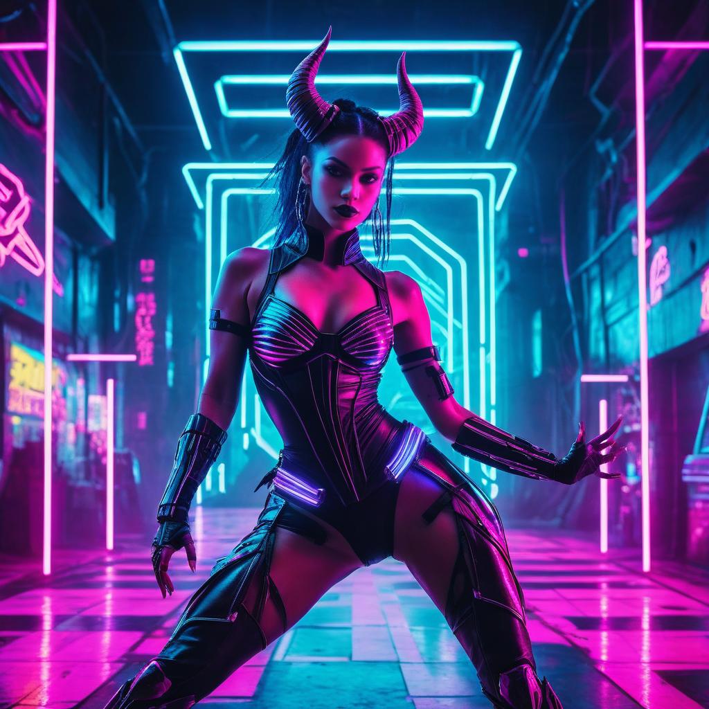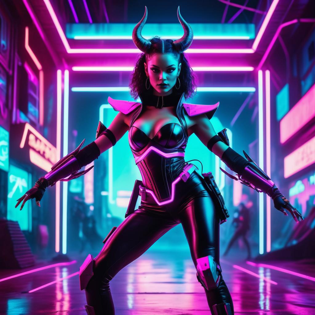 Female Demon in Cyberpunk Neon Setting