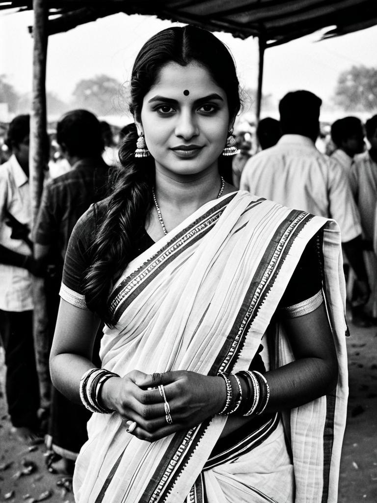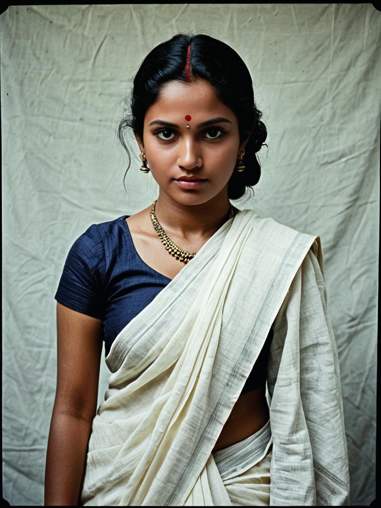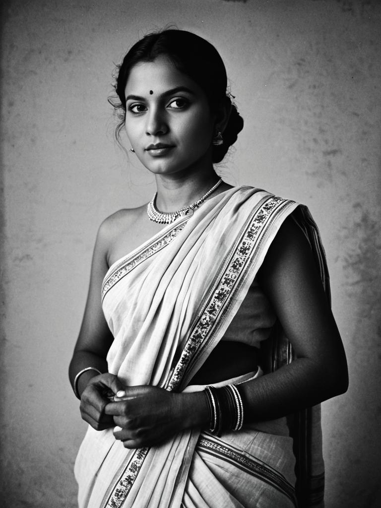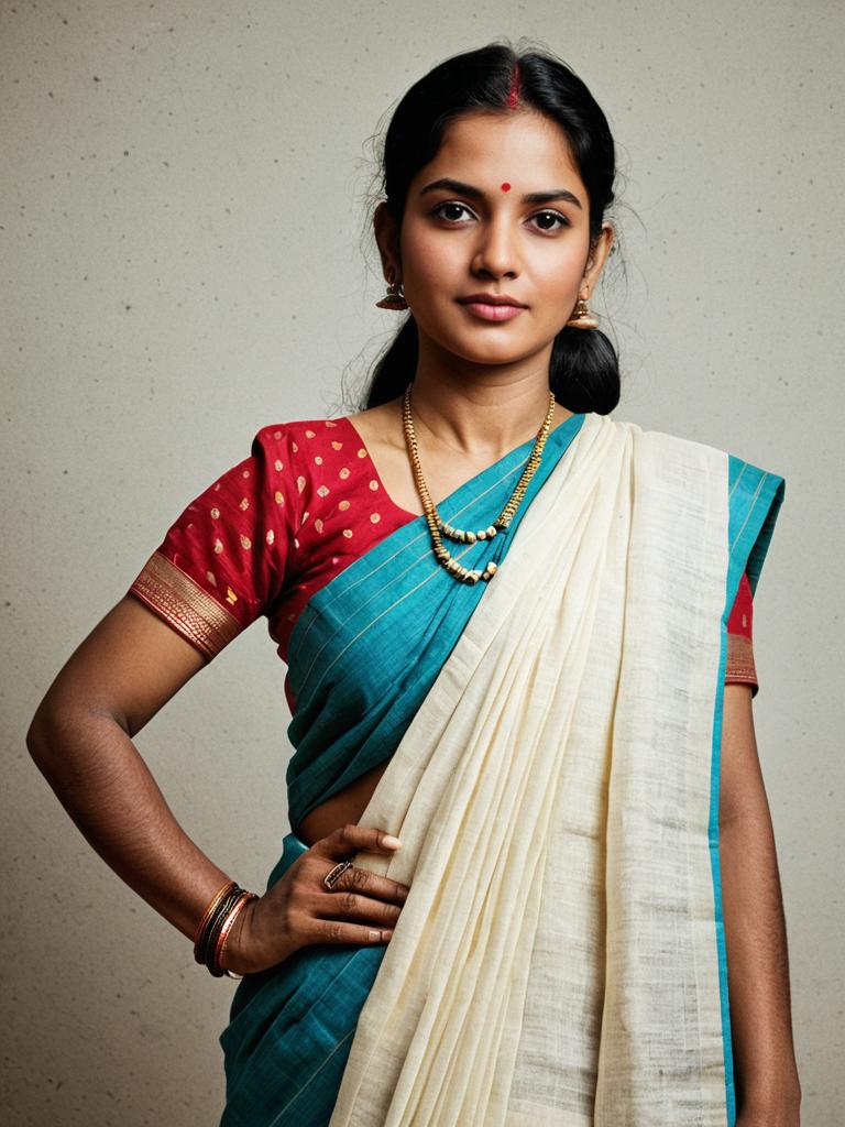 Photorealistic Malmal Cotton Saree Portrait