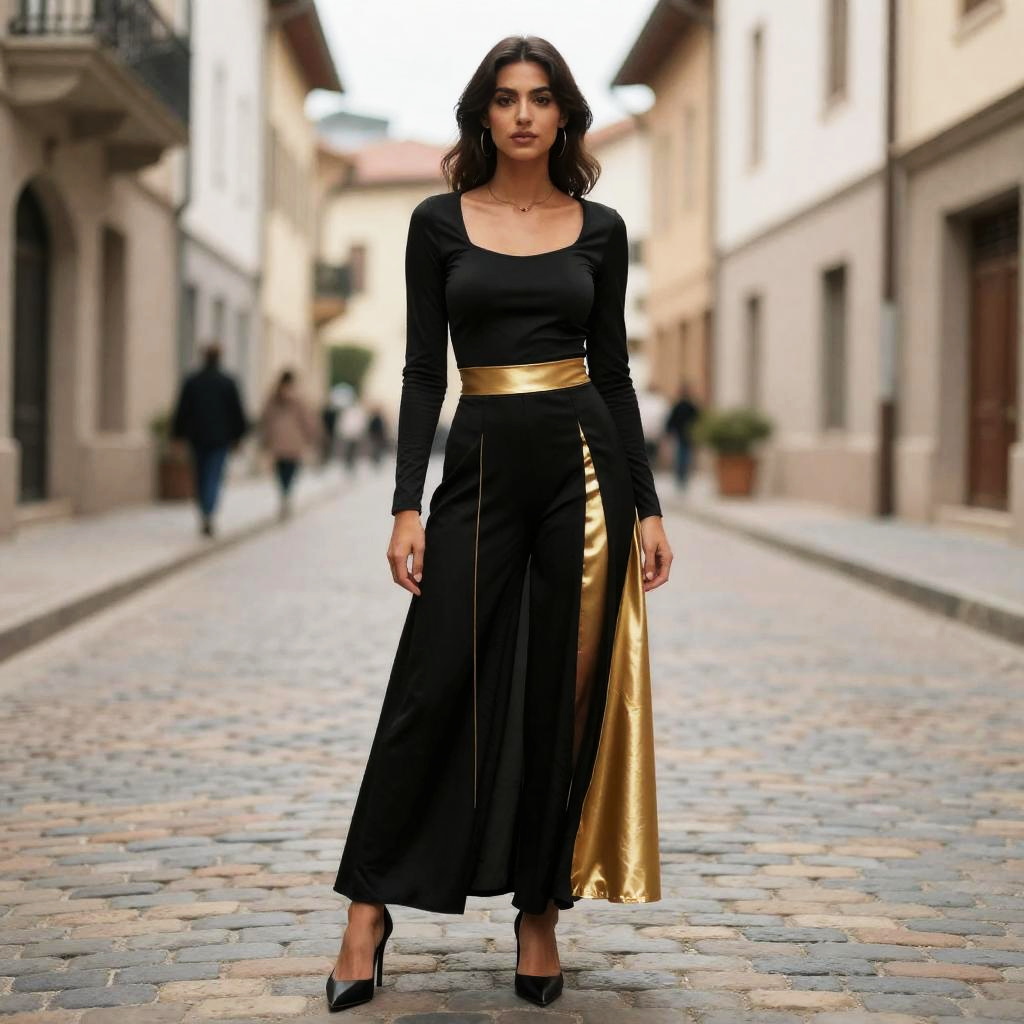 Italy flag costume, woman in a red cape and blue skirt walking down a street
