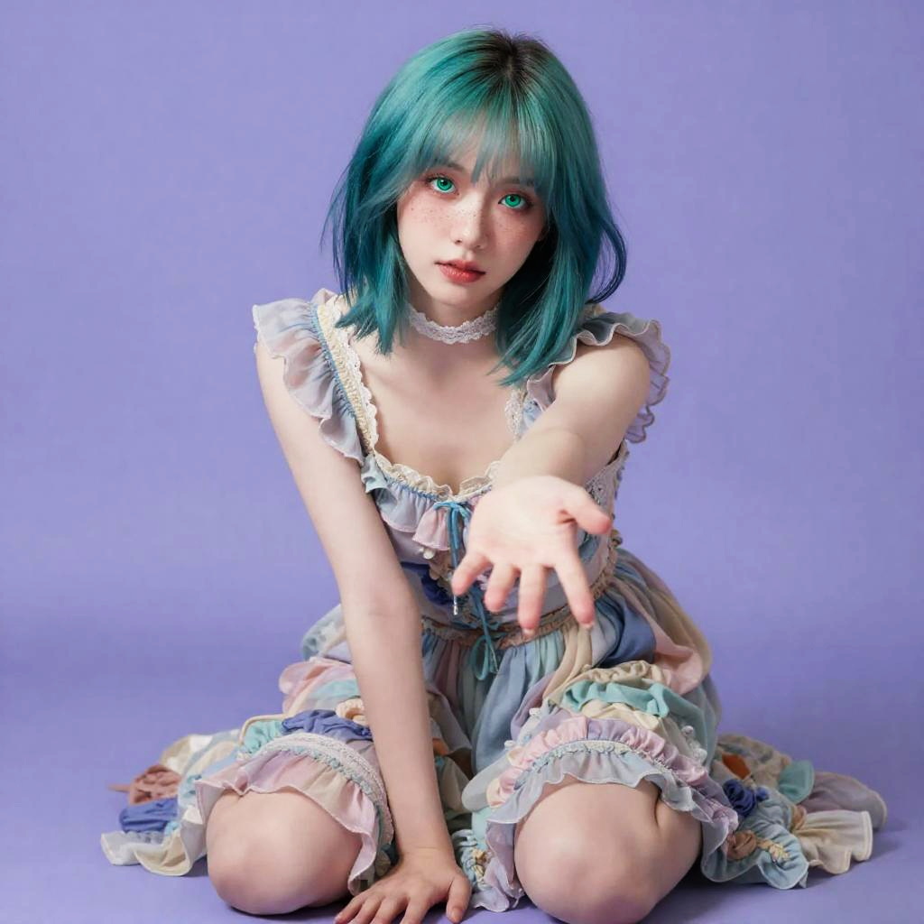 Silver-Blue Maiden in Pastel Curtsy