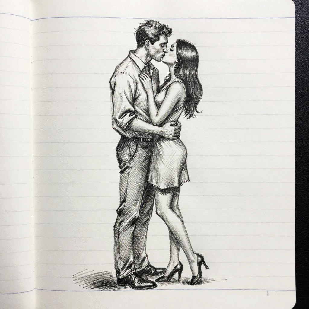 Romantic Pencil Sketch on Notebook Paper