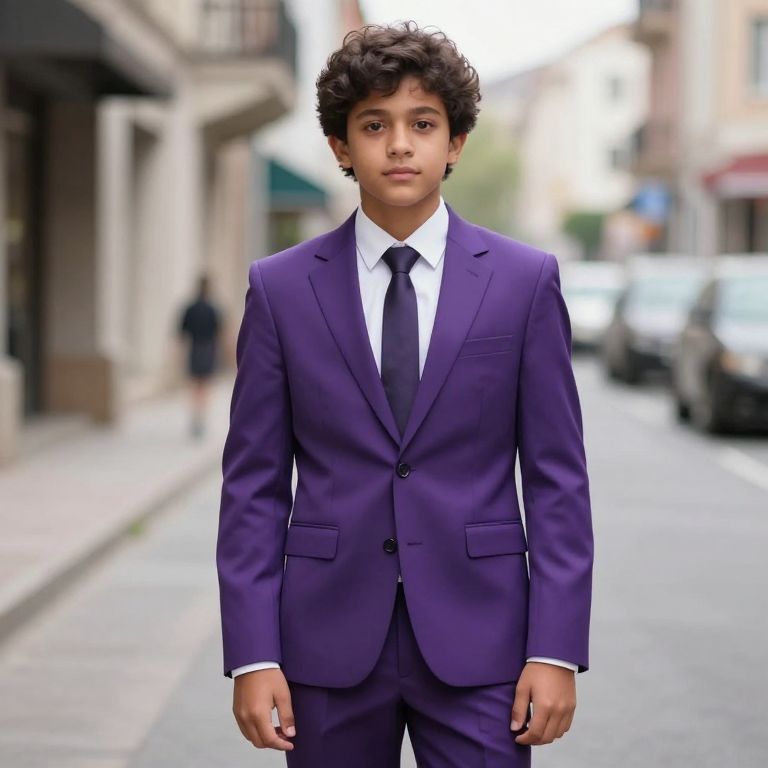 Boy in Purple Suit on Street