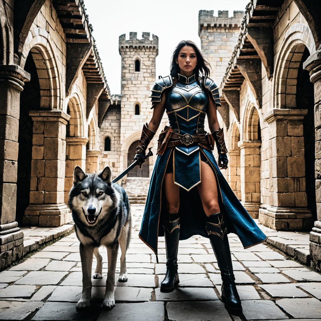 Armored Bard Walking a Goldfish in a Fantasy Park