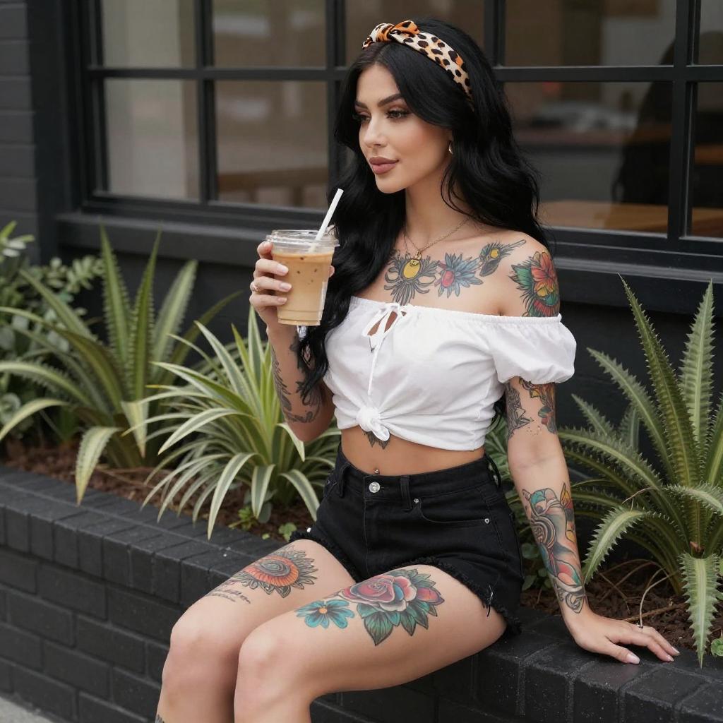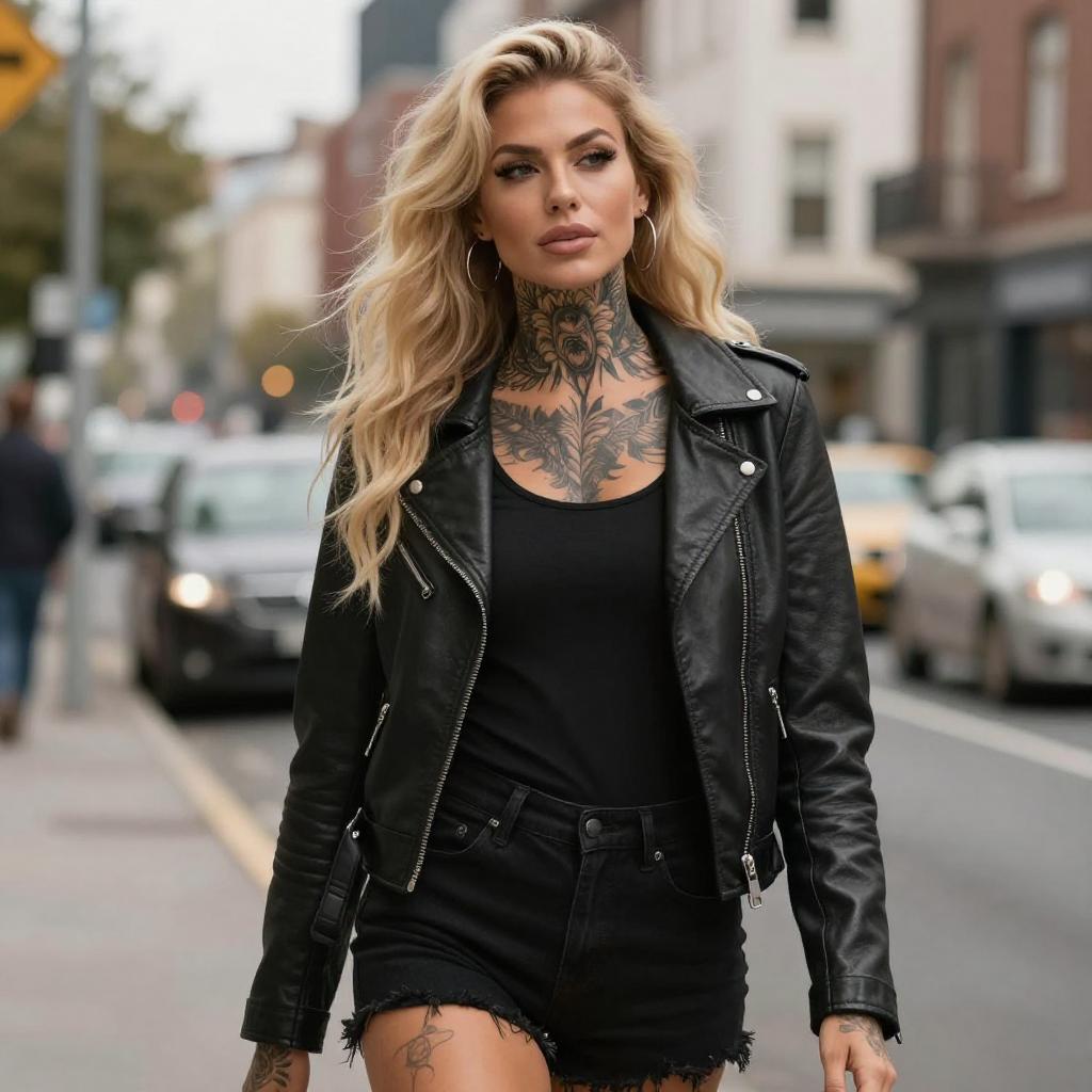 Tattooed Woman Urban Portrait