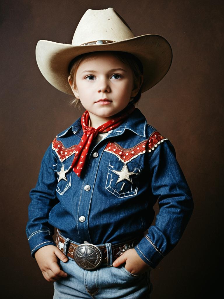 Child in Cowboy Costume, photorealistic detailed studio portrait