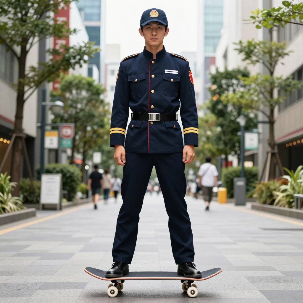 Tokyo Manji Gang Uniform Costume, man in uniform standing on a skateboard in a city