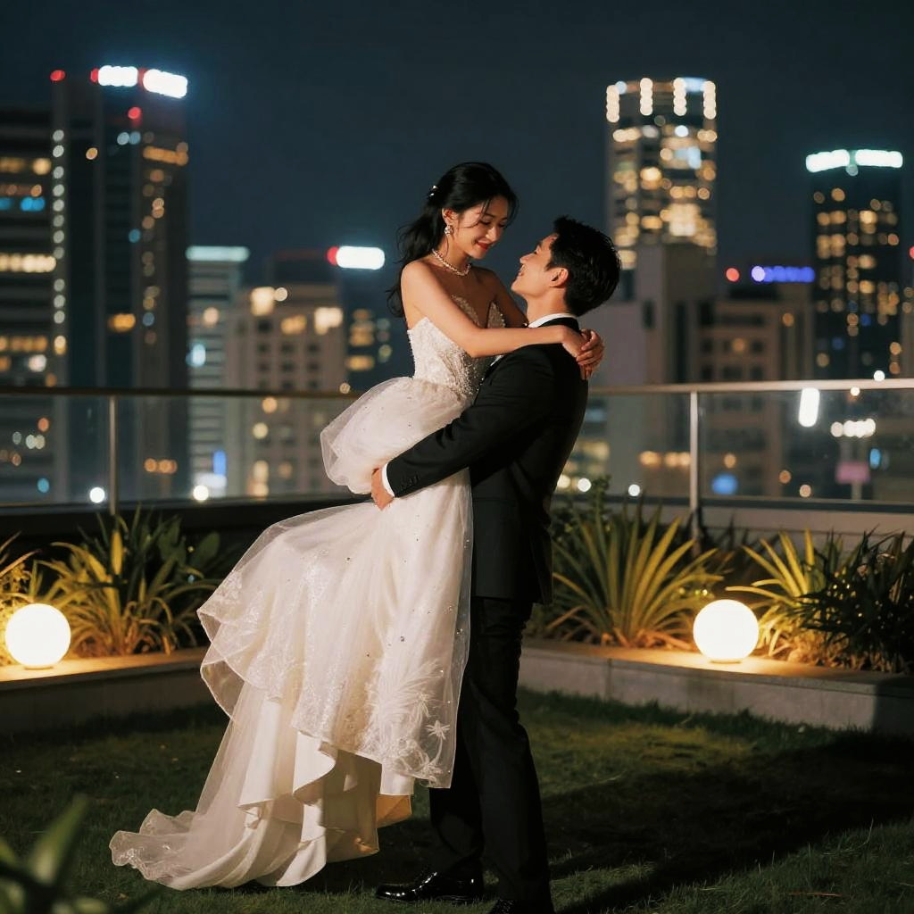 Man carrying woman bridal style on a sandy beach at sunset, waves gently crashing, warm pastel sky, tender and loving expressions, high resolution, dreamy ambiance
