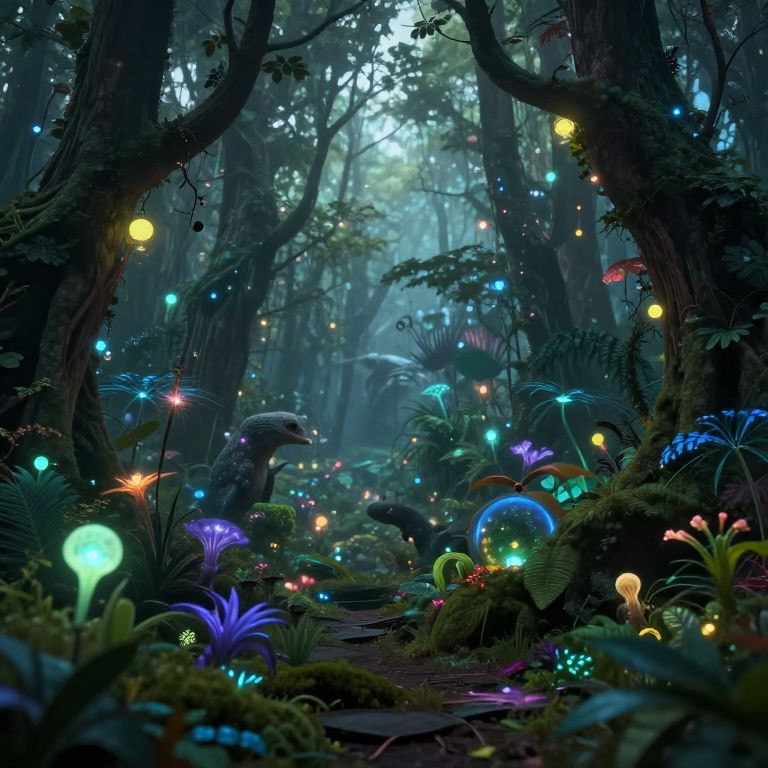 Surreal Bioluminescent Forest Scene