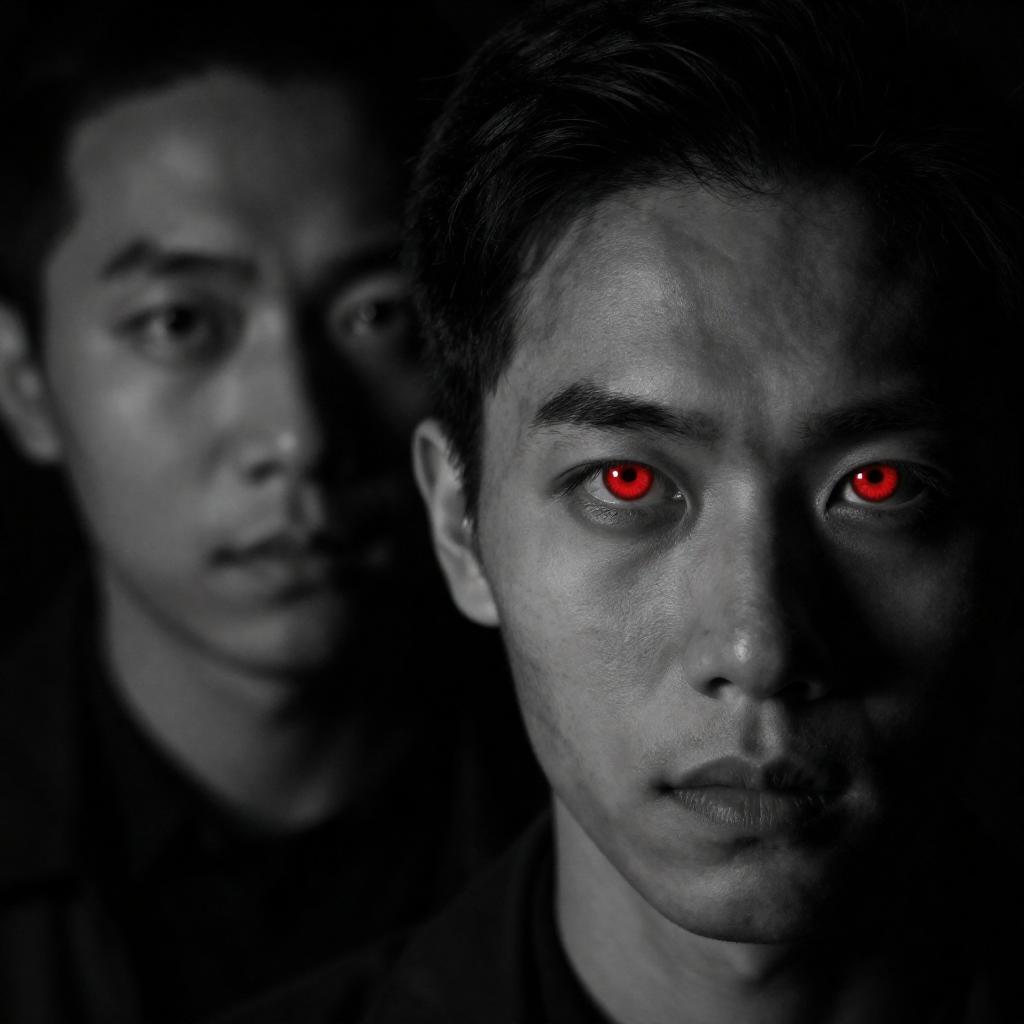 Intense Portrait in a Green-lit Corridor
