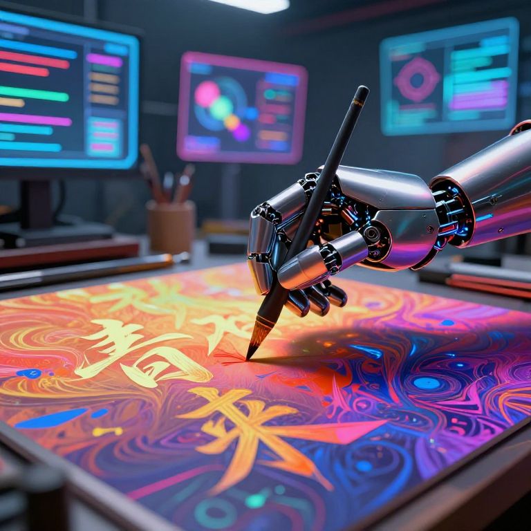 Imagefab high-tech 3D printer manufacturing complex digital sculptures, glowing filament, surrounded by digital art displays, neon-lit room filled with creative energy and advanced tech equipment, cyberpunk aesthetic with dynamic shadows and reflections --v 5 --q 2 --ar 16:9