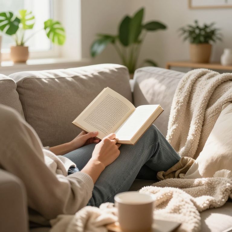 Thankful elderly man holding a handmade gratitude journal, sitting in a cozy library nook surrounded by books and plants, soft natural light entering through a nearby window, peaceful, warm color palette, intricate details