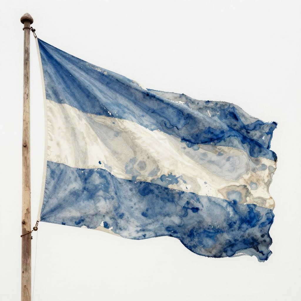 Blahaj flag waving proudly on a sunny beach, vivid blue and white colors, soft fabric texture, realistic folds and shadows, clear sky background, photorealistic style