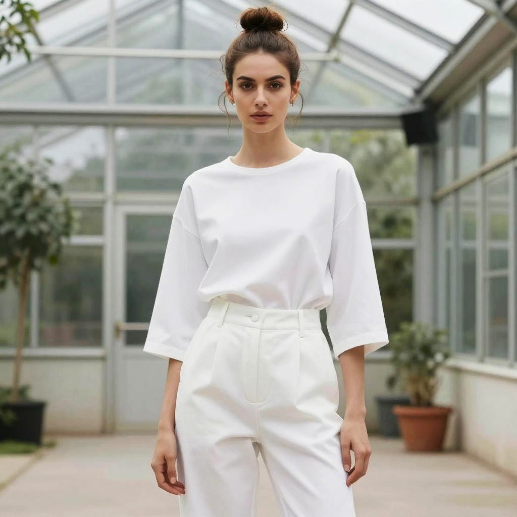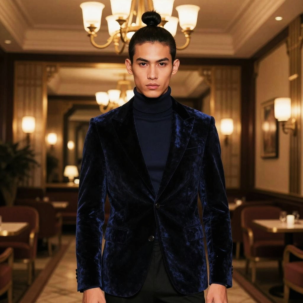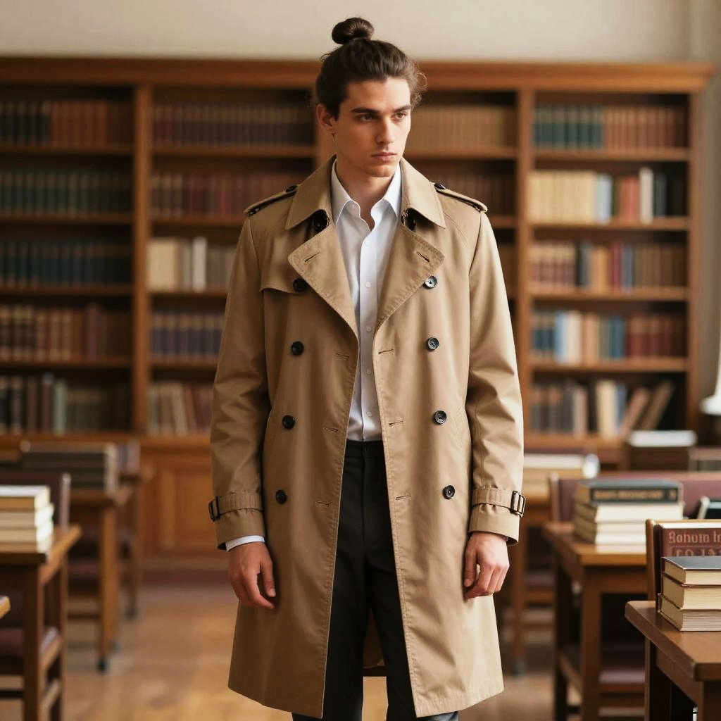 Disconnected Top Knot hairstyle on male model, wearing sporty crop top and track pants, in modern gym studio, captured in fashion editorial style with glossy tone.