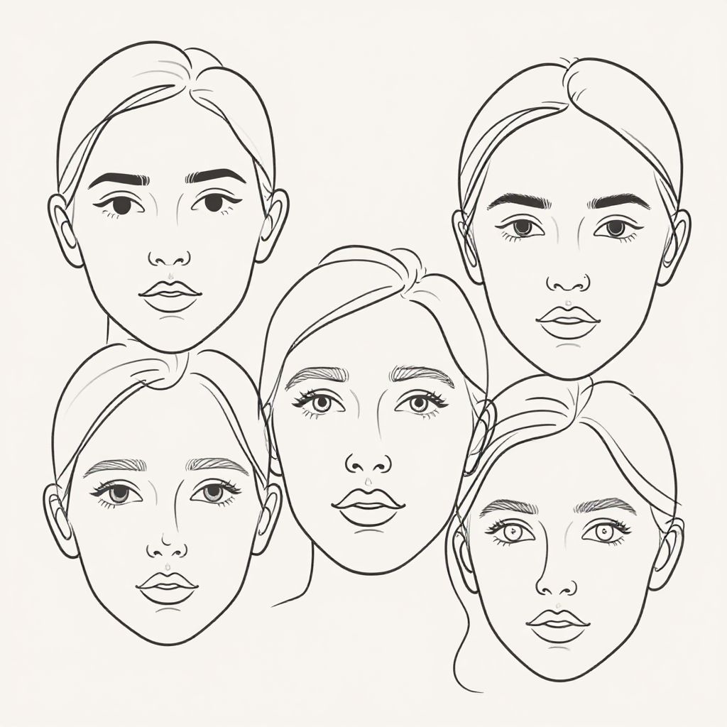 Vector line art generator rendering human faces with expressive continuous line drawings, stylized minimalist portraits using elegant black strokes on soft neutral backgrounds, artistic and modern vector design with focus on emotion