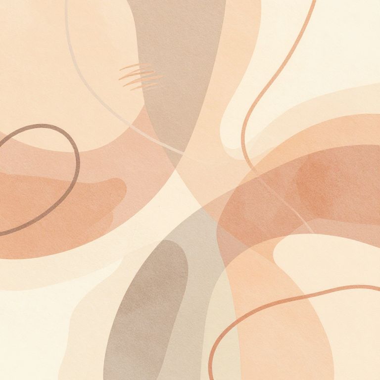 Quiero imágenes illustrating an abstract art composition filled with dynamic shapes and flowing lines in warm pastel tones, creating a harmonious balance between chaos and order with a tactile texture effect.