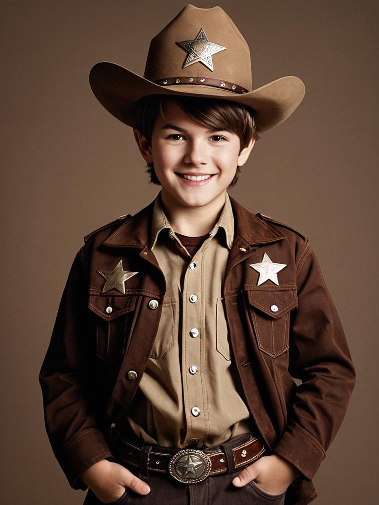 Portrait of a young boy dressed in a Mario Kart-inspired fancy dress costume, featuring a red shirt, blue denim overalls, and a red hat with a white emblem. The boy has brown hair, blue eyes, and is smiling while looking at the viewer. The image captures the upper body and conveys a playful and cheerful mood.
