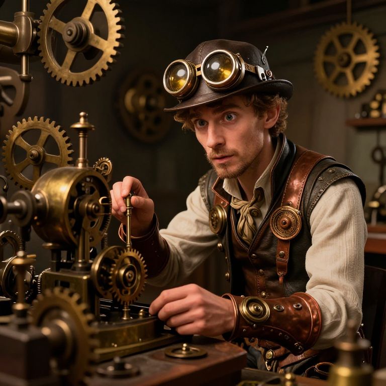 Steampunk Inventor Moritz in Workshop