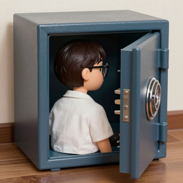 "Fauvism Hyper realistic, back view of Son Ye-jin wearing glasses looking inside a small open safe, cartoon style, hyper detailed.,"