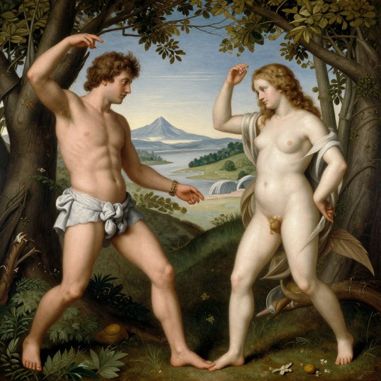 Scumbling ALBRECHT DURERS ADAM AND EVE PAINTING BUT INSTEAD IT IS A REAL LIFE PHOTOGRAPH FROM THE 70S,