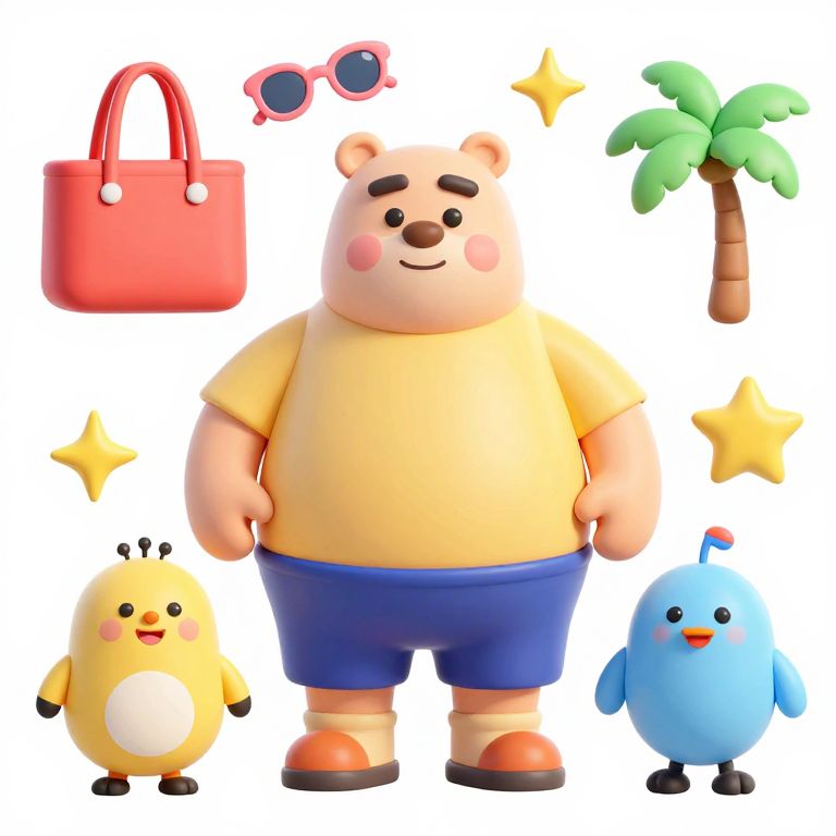 Fashion Photography summertime fun 3d digital illustration cartoon goofy gross animals. transparent background.,