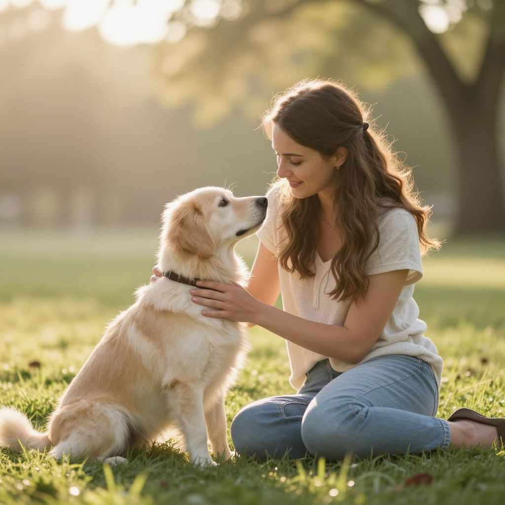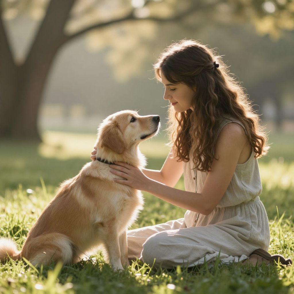 In a sunlit haven of serenity, a tender bond blossoms between woman and dog, their shared gaze weaving a tapestry of trust and companionship amidst the gentle hum of morning life.