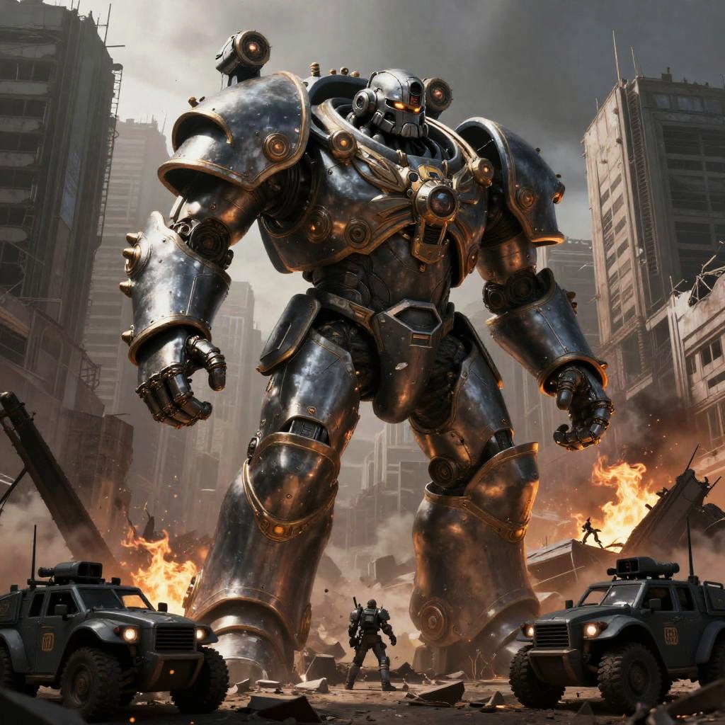 Digital ghost operative evading hulking police troopers, splash art with high-contrast colors, by Syd Mead, highly detailed, dystopian, Greg Rutkowski style