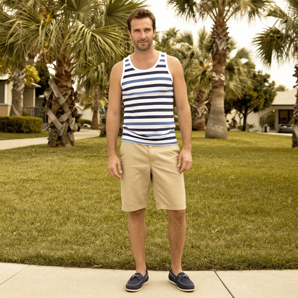 A man, denim button-up shirt, relaxed-fit cargo shorts, leather retro sneakers, earthy greens and browns, orchard grove, dappled sunlight, buzzing bees, kodak sp analog photo, relaxed smile, enjoying nature. Man has masculine face and piercing eyes