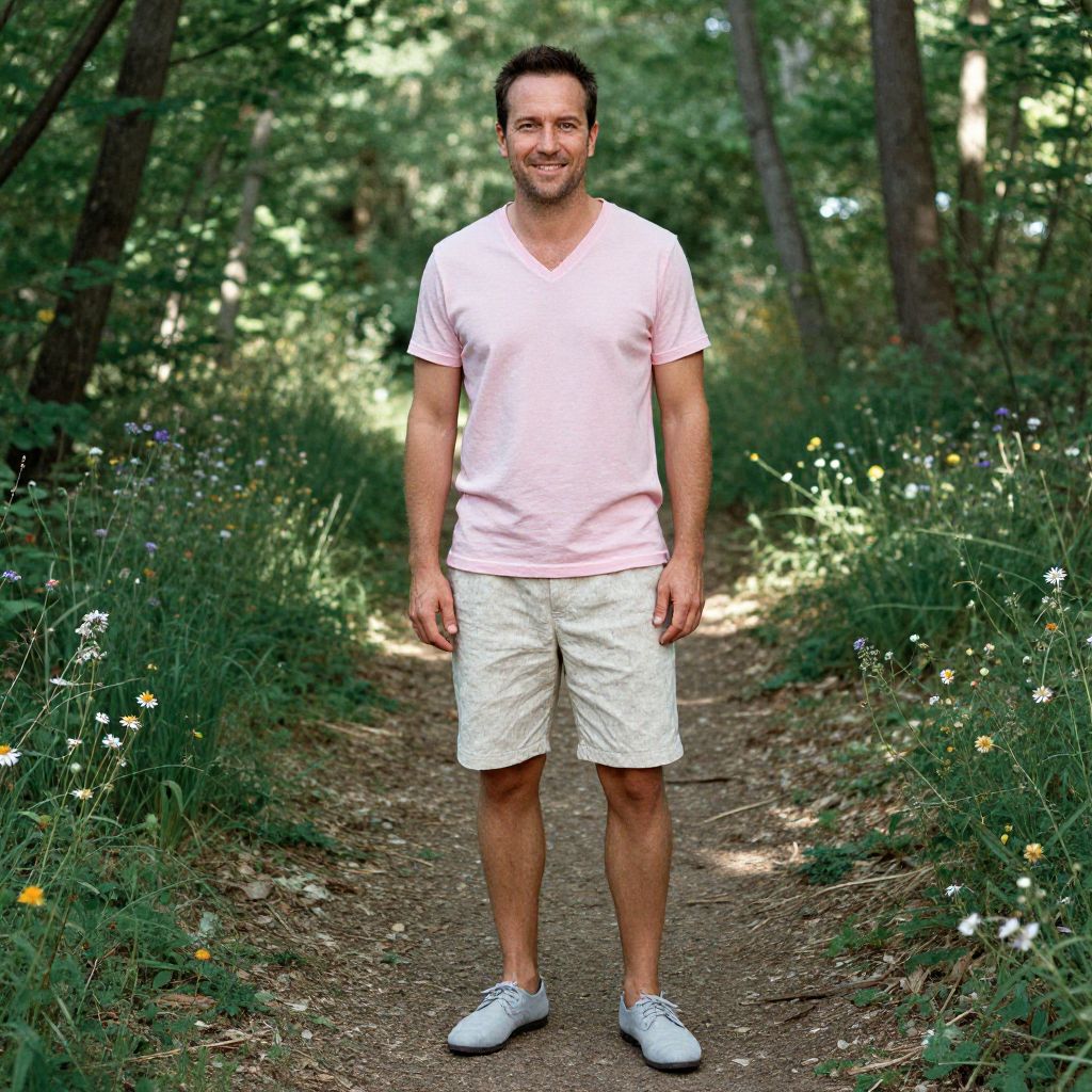 Man in Earthy Orchard Setting