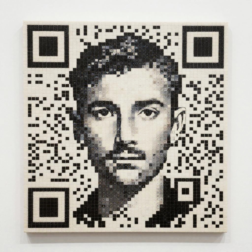 QR code art generator visualizing a mosaic of tiny QR code tiles forming a giant abstract portrait, monochrome scheme with subtle gradients, minimalist style combined with pixel-perfect precision, modern art gallery atmosphere emphasizing tech-driven creativity