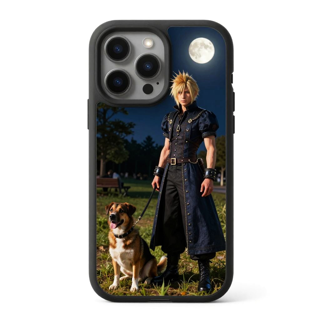 (masterpiece, best quality:1.5), Edwardian clothing, Dog park, Moon in the night, \Rikku(Final Fantasy)