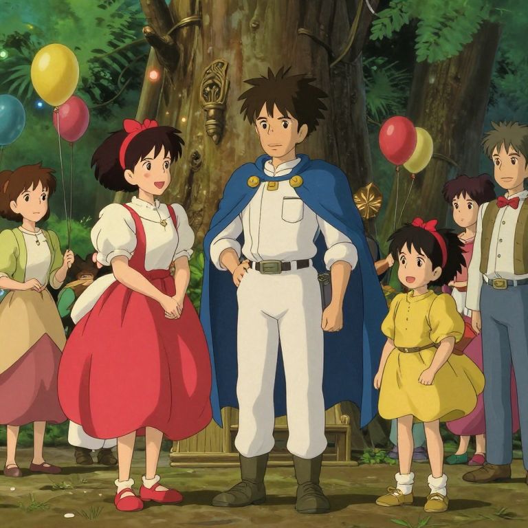 A vibrant, anime-style royal party with a Studio Ghibli theme, featuring Hayao Miyazaki's art style, set in an 8k, highly detailed environment.