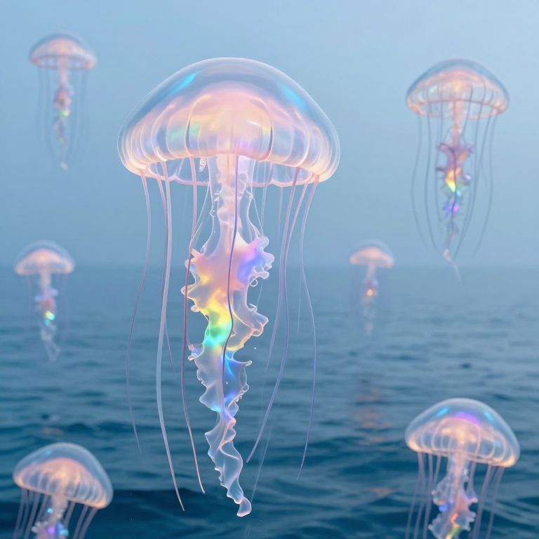 Iridescent Jellyfish Over Floating Islands