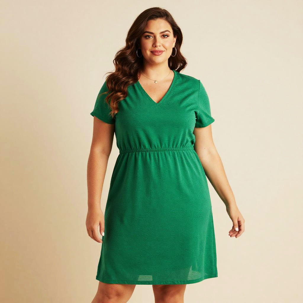Stylish Plus Size Woman in Green Dress