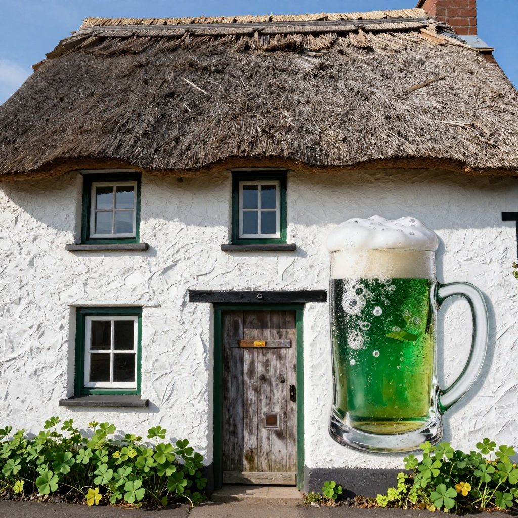 Hyperrealistic Irish Cottage with Beer Mug Walls