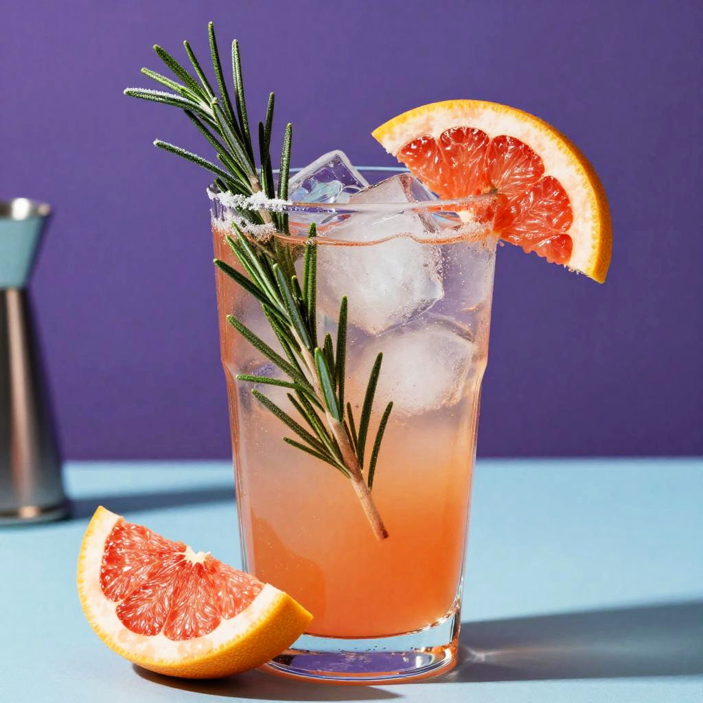 An illustration of a tropical mojito, garnished with blood orange wheel and fresh basil sprig, featuring a bold pop-surreal collage aesthetic, highly detailed, true color, sharp contrast, vivid background.