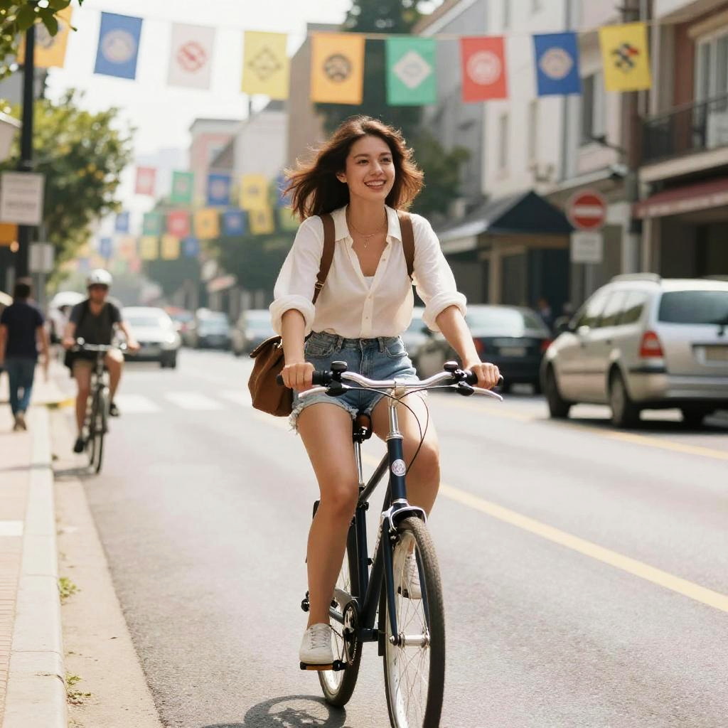 Joyful Bicycle Ride on Sunny Street