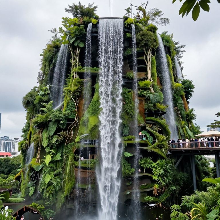 Upside-Down Waterfalls in Rooftop Garden