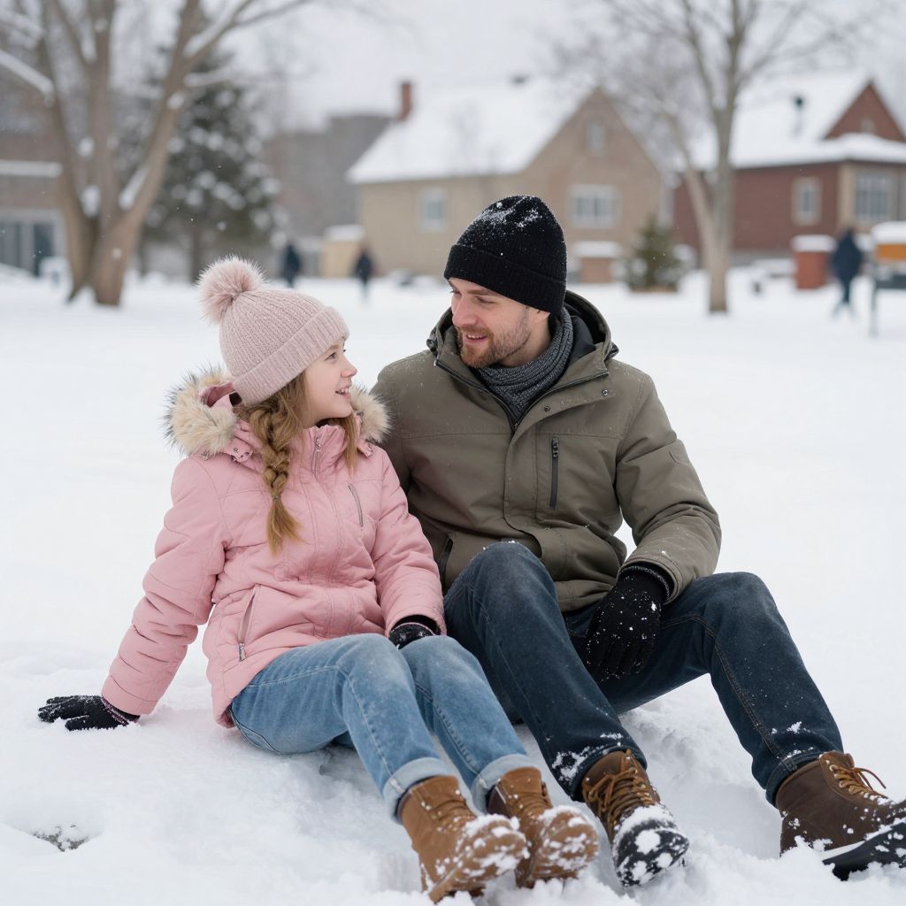 Family Sitting on Snowy Ground