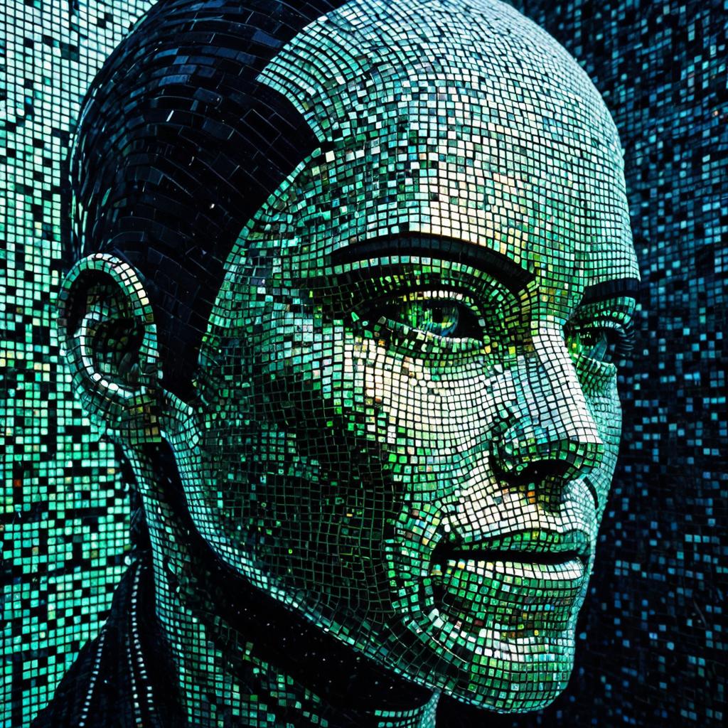 Vibrant Android Visage in Neon Grids