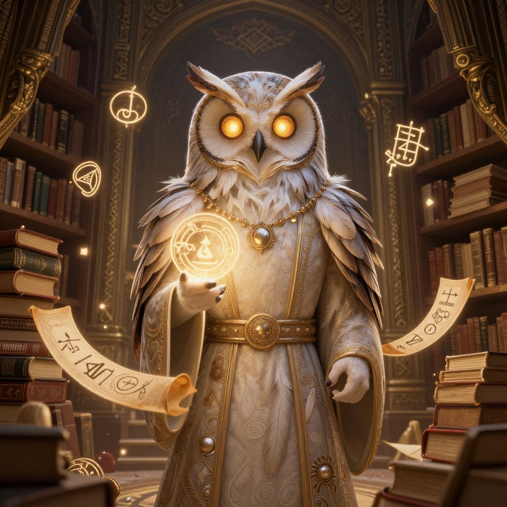 Owl Humanoid Scholar in Magical Library